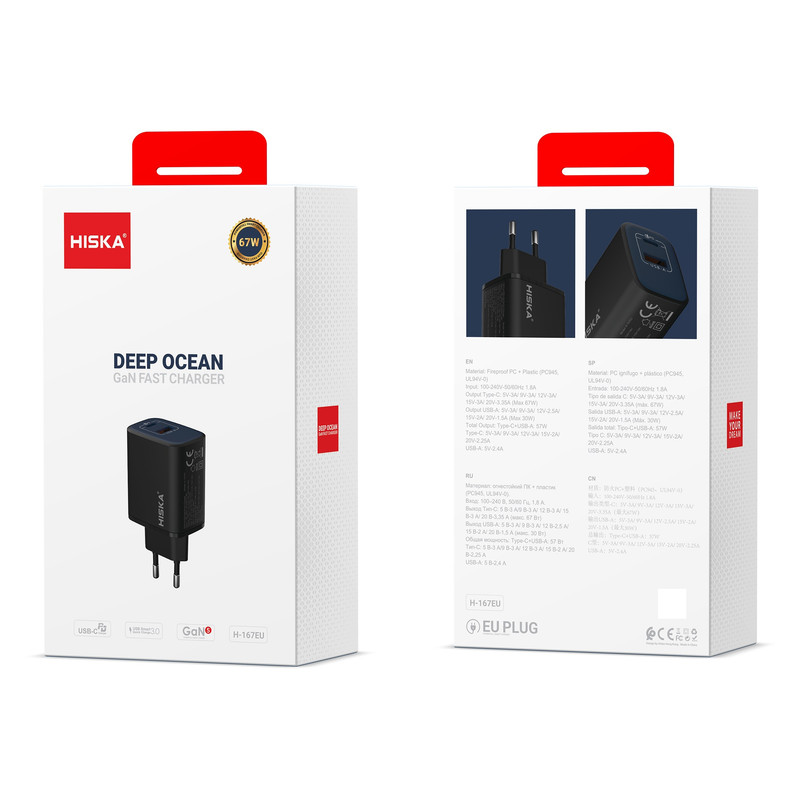 شارژر سریع گالیوم نیترید (GaN) مدل H-167EU از برند معتبر هیسکا، محصولی بینظیر و باکیفیت است که نیازهای کاربران حرفهای و عادی را برای شارژ دستگاههای الکترونیکی خود به بهترین نحو برآورده میکند. با طراحی مهندسی شده و استفاده از فناوری پیشرفته GaN، این شارژر نه تنها قدرت و سرعتی بیرقیب در شارژ کردن انواع دستگاهها ارائه میدهد، بلکه نسبت به شارژرهای سنتی کوچکتر، سبکتر و کارآمدتر است. فناوری GaN باعث کاهش اتلاف انرژی شده و حرارت تولید شده توسط دستگاه را به حداقل میرساند، در نتیجه شارژر ضمن ارائه عملکرد عالی، طول عمر بالاتری دارد. شارژر H-167EU با توان خروجی حداکثر 67 وات، برای شارژ انواع دستگاههای الکترونیکی از جمله گوشیهای هوشمند، تبلتها، لپتاپها، اسپیکرهای بلوتوثی، هدفونها و سایر دستگاههای USB مناسب است. خروجی نوع C این دستگاه با پشتیبانی از ولتاژها و جریانهای مختلف (از جمله 20 ولت/3.35 آمپر) امکان شارژ سریع لپتاپهایی نظیر مکبوک و سایر دستگاههای قدرتمند را فراهم میکند. همچنین درگاه USB-A آن با خروجی 5 ولت/2.4 آمپر، گزینهای مناسب برای شارژ دستگاههایی است که نیاز به توان کمتری دارند، مانند هندزفریهای بلوتوثی و گجتهای کوچکتر. یکی از ویژگیهای برجسته این محصول، طراحی چندمنظوره آن است که امکان استفاده از هر دو پورت USB-C و USB-A را به طور همزمان فراهم میکند. با این قابلیت، میتوانید دو دستگاه مختلف را به طور همزمان شارژ کنید، بدون این که از سرعت یا کارایی شارژ کاسته شود. مجموع توان خروجی در حالت استفاده از هر دو پورت، بهینه شده تا دستگاههای شما به سرعت و به طور ایمن شارژ شوند. این شارژر با استفاده از مواد پلاستیکی مقاوم در برابر آتش (PC945, UL94V-0) ساخته شده که امنیت و دوام بالای آن را تضمین میکند. همچنین طراحی دوشاخه اروپایی (EU Plug) آن باعث شده است که این محصول برای استفاده در بسیاری از کشورها مناسب باشد. محدوده ولتاژ ورودی 100-240 ولت نیز انعطافپذیری بالایی برای استفاده در شرایط مختلف و مناطق گوناگون فراهم میکند. ظاهر این شارژر نیز کاملاً مدرن و جذاب است. رنگبندی مشکی مات با جزئیات مینیمالیستی آن، ظاهری حرفهای و لوکس به محصول بخشیده است، وزن سبک آن، حمل و نقل شارژر را آسان کرده و برای افرادی که دائماً در سفر هستند گزینهای ایدهآل است.