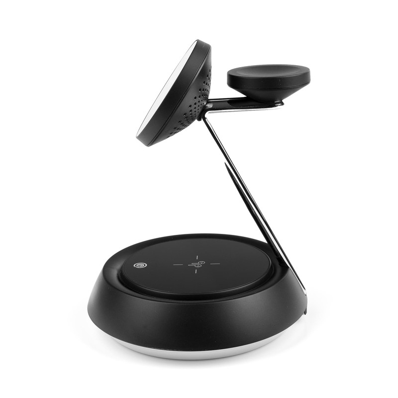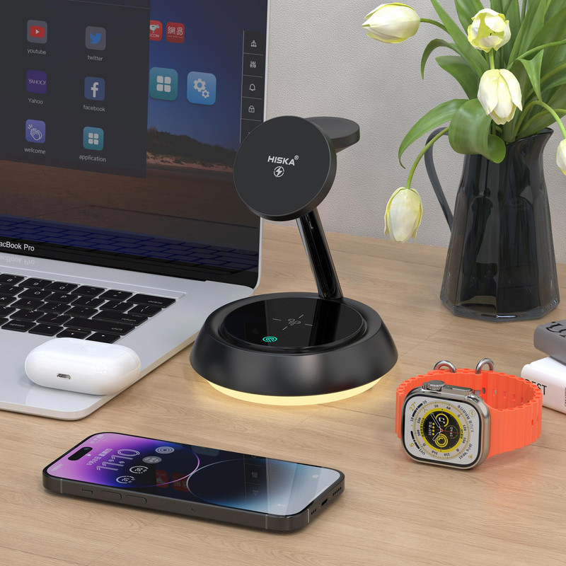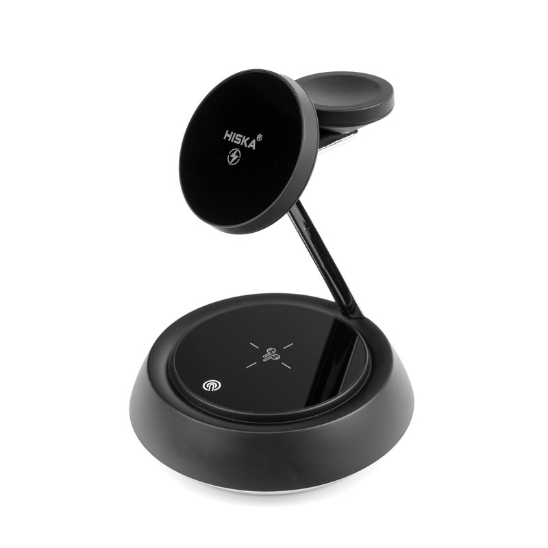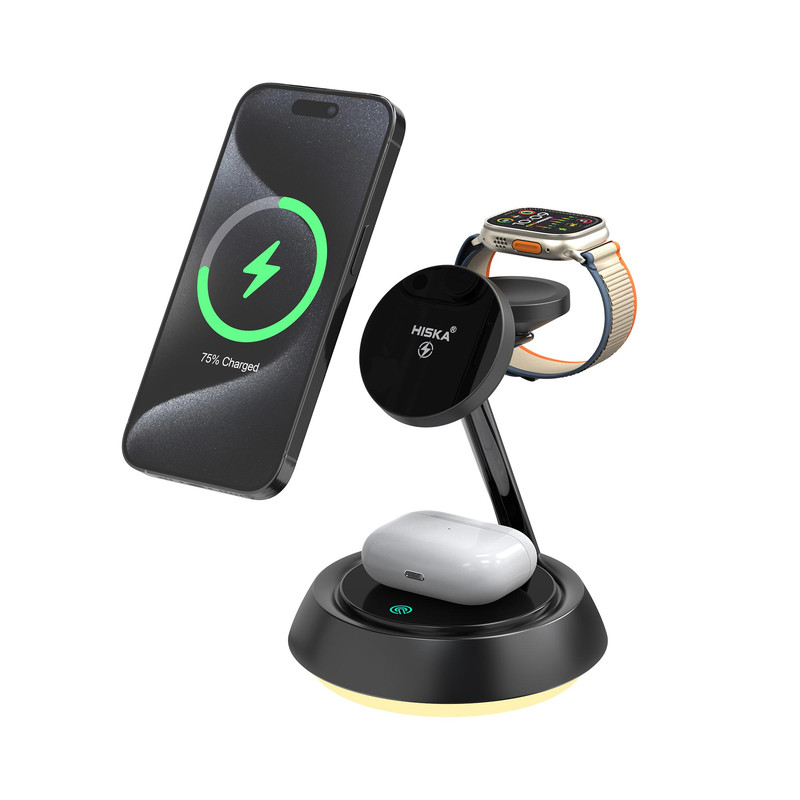 شارژر بیسیم چندکاره هیسکا مدل HR-13، دستگاهی کارآمد و شیک است که امکان شارژ همزمان گوشی، ساعت و هدفون را برای شما فراهم میکند. این شارژر ۳ در ۱ با طراحی زیبا و مینیمال خود، علاوه بر عملکرد بالا، بهراحتی با دکور هر فضایی هماهنگ میشود. هیسکا HR-13 برای کسانی که به دنبال سرعت و کارایی بالا در شارژ دستگاههای خود هستند، انتخابی مناسب است. این شارژر با ورودیهای ۵V/۲A، ۹V/۲A، و ۱۲V/۲A کار میکند و از انواع آداپتورهای استاندارد پشتیبانی میکند. توان خروجی آن برای گوشی (۱۵W، ۱۰W، ۷.۵W، ۵W)، ساعت (۲.۵W) و هدفون (۵W) تنظیم شده است و امکان شارژ سریع و ایمن دستگاههای شما را فراهم میآورد. همچنین، رابط USB-C در این شارژر به انتقال بهتر انرژی کمک میکند. فرکانس شارژ آن ۱۱۰-۲۰۵ کیلوهرتز است و با جذب مغناطیسی قوی، دستگاهها را بهصورت ایمن روی پایه نگه میدارد تا از افتادن ناگهانی جلوگیری شود. شارژر هیسکا HR-13 با ارائه شارژ سریع تا ۱۵ وات، دستگاهها را در زمان کمتری آماده استفاده میکند. این شارژر ایمنی بالایی دارد و با داشتن محافظهای گرمایی و ضد اضافه بار، از دستگاههای شما محافظت میکند. نور ملایم داخلی آن در هنگام شارژ، فضایی آرامشبخش ایجاد میکند و استفاده از آن در شب نیز مناسب است. استفاده از این دستگاه بسیار راحت است؛ کافیست گوشی، ساعت یا هدفون خود را روی پایه قرار دهید تا بهصورت خودکار شارژ شوند، بدون نیاز به اتصال دستی یا سیمهای اضافی. این محصول طراحی مشکی براق و جمعوجوری دارد که بهخوبی در هر فضایی جا میگیرد و جلوهای زیبا به محیط شما میبخشد. شارژر بیسیم چندکاره هیسکا مدل HR-13، گزینهای ایدهآل برای کسانی است که میخواهند بهسادگی و با یک دستگاه، چندین دستگاه را بهصورت ایمن و سریع شارژ کنند.