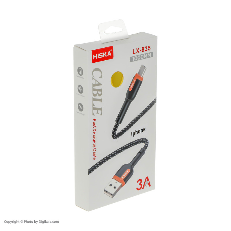 کابل تبدیل USB به لایتنینگ مدل LX-835 محصولی باکیفیت از برند هیسکا است. با این کابل میتوانید تمام دستگاههایی که دارای ورودی Lightning هستند مانند iPhone، iPad و AirPod را شارژ کنید و یا با اتصال به کامپیوتر و انجام عملیات Data Syncing به انتقال اطلاعات بپردازید. روکش پارچهای این مدل موجب افزایش طول عمر و افزایش استحکام این کابل میشود که با خم شدن مداوم آن به بدنهی کابل آسیبی وارد نخواهد شد. شرکت هیسکا این کابل را با طولی معادل 1 متر و وزنی سبک روانه بازار کرده است. همراه بسیاری از محصولات اپل کابل مخصوص آنها نیز عرضه میشود؛ اما وجود یک کابل یدک باعث میشود برای شارژ گوشی موبایل بهوسیلهی پاوربانک، شارژ خود پاوربانک و شارژ هدستهای بلوتوث به همراهداشتن کابل اورجینال نیازی نداشته باشید و کابل اورجینال هم سالم باقی بماند.