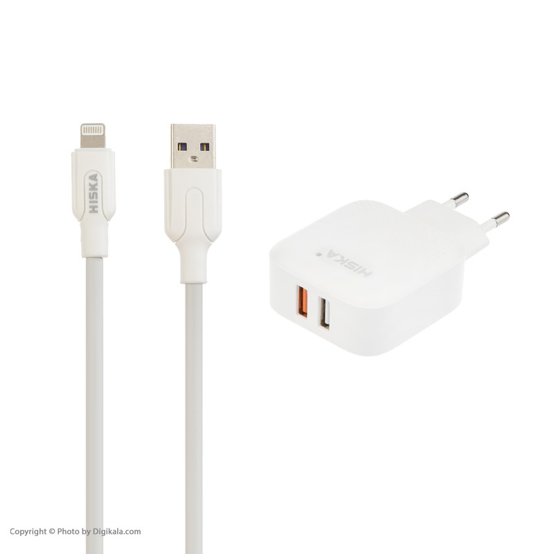 شارژر دیواری هیسکا مدل H-112PD به همراه کابل تبدیل لایتنینگ