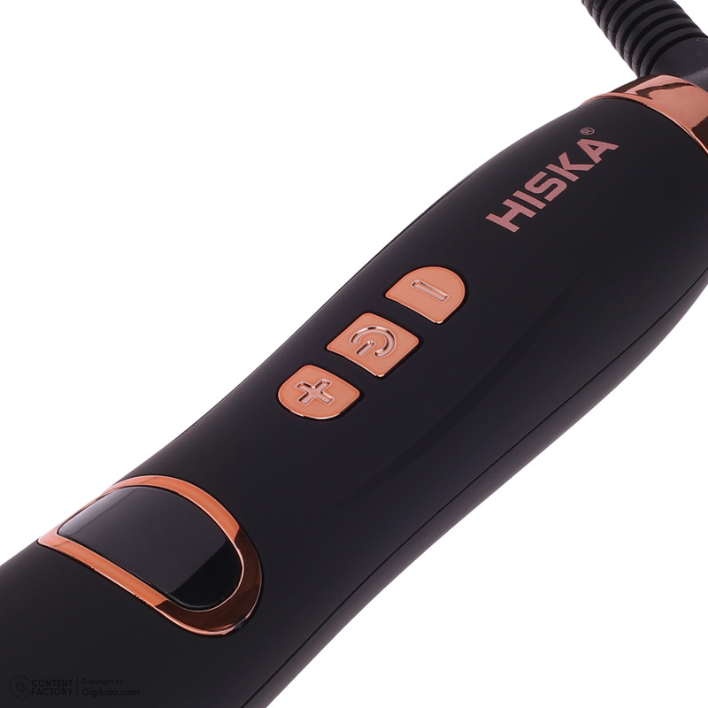 فر کننده مو هیسکا مدل H5320 دارای صفحاتی از جنس سرامیک بوده و حالت دهنده قیفی با قطر 13 تا 25 میلی متری دارد که میتواند فر ریز ایجاد کند. هیسکا H5320 قابلیت تنظیم دما بین 60 تا 230 درجه سانتی گراد را دارد که حداکثر دمای آن 230 درجه سانتی گراد است.این فرکننده دارای صفحه نمایش دیجیتال می باشد که شما میتوانید میزان حرارت دستگاه را تنظیم و مشاهده کنید. همچنین دارای سیم 3 متری گردان می باشد که کار با آن را راحت تر می کند. فرکننده هیسکا مدل H5320 مجهز به سیستم خاموشی خودکار پس از 60 دقیقه عدم استفاده می باشد. و همچنین مدت زمان داغ شدن آن 30 ثانیه می باشد.
